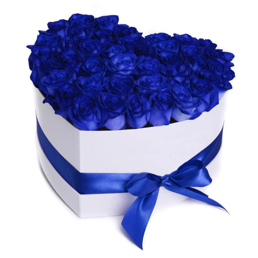 Цветы в коробке «Синее сердце» с доставкой по г Новоуральск: вы можете купить букет в цветочном супермаркете «Флормания» по цене от 3390 руб.