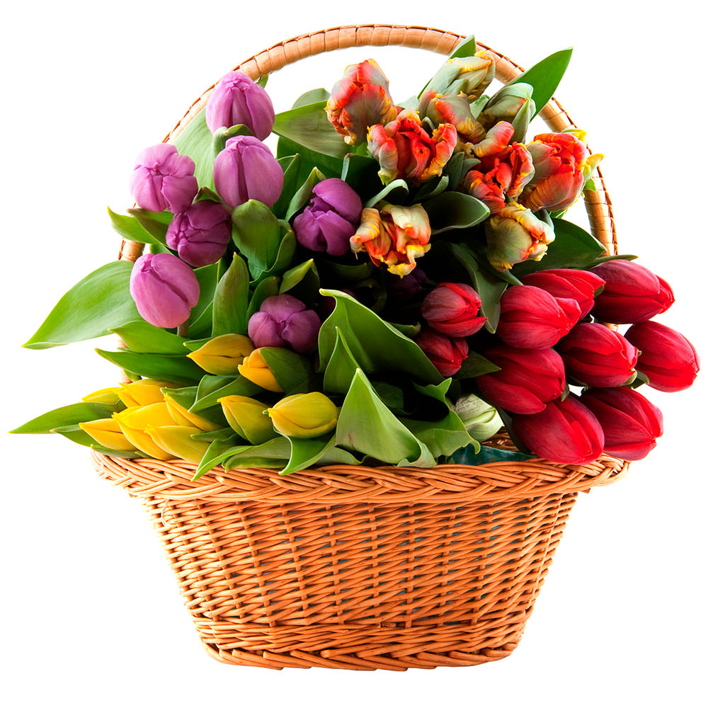 Цветы в корзинке «Микс тюльпанов» с доставкой по г Новоуральск: вы можете заказать букет в интернет-салоне цветов «Флормания» по цене от 3890 руб.