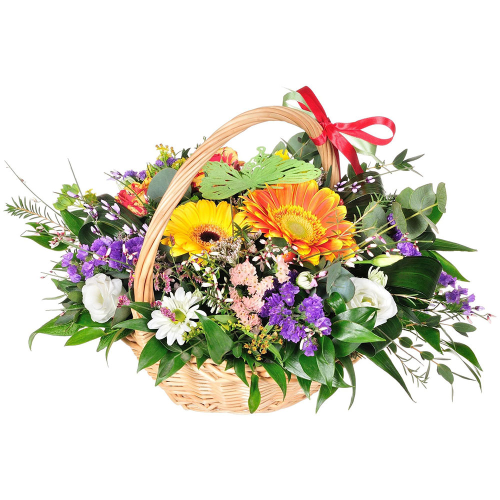 Цветы в корзинке «Радуга» с доставкой по г Новоуральск: вы можете заказать букет в салоне цветов «Флормания» по цене от 3890 руб.