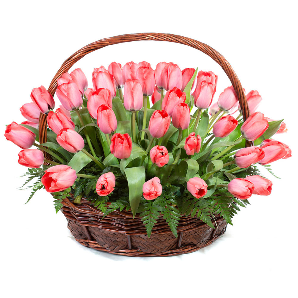 Цветы в корзинке «Розовые тюльпаны» с доставкой по г Новоуральск: вы можете заказать букет в интернет-салоне цветов «Флормания» по цене от 3890 руб.